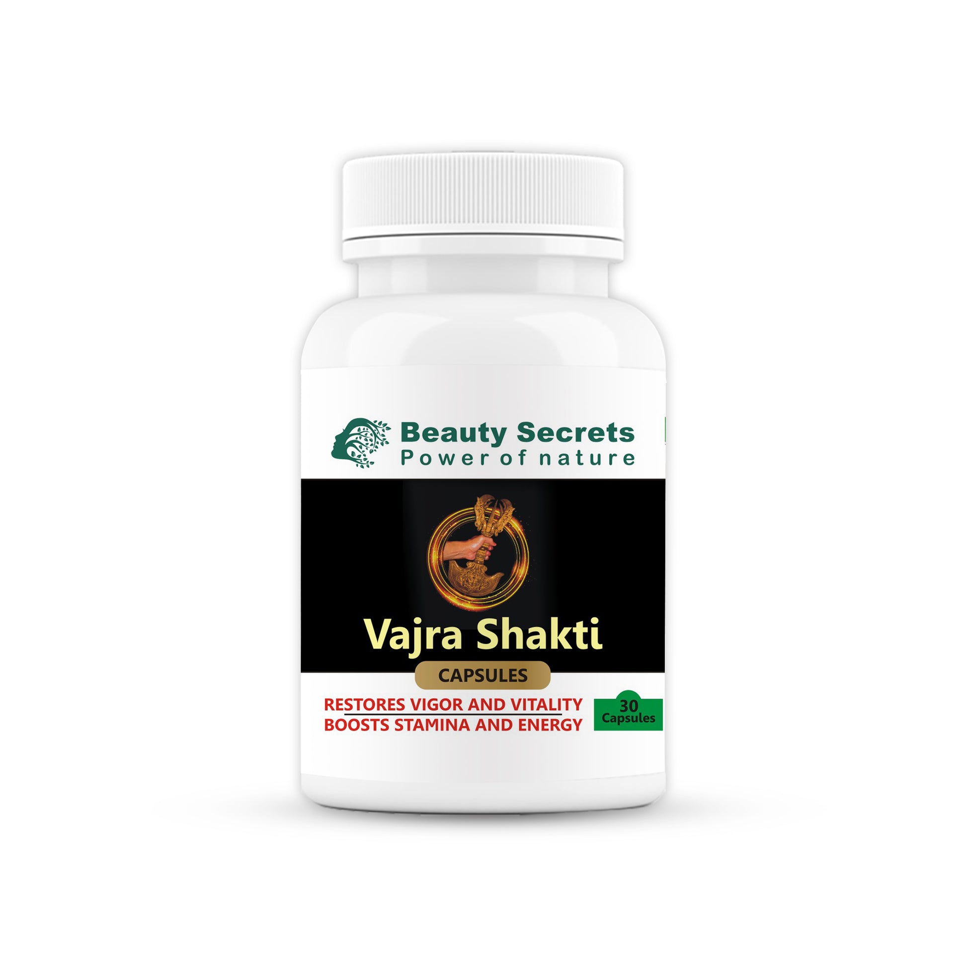 VAJRA SHAKTI’S PROMISE - NO SIDE EFFECTS: Our products are made from a combination of herbal ingredients that are clinically proven to improve health and wellness. Backed by doctors for quality and potency, our products are designed to have a long term impact on enhancing energy in men. For questions or assistance, please reach out to contact@beautysecretsindia.com/ +91- 9871215656